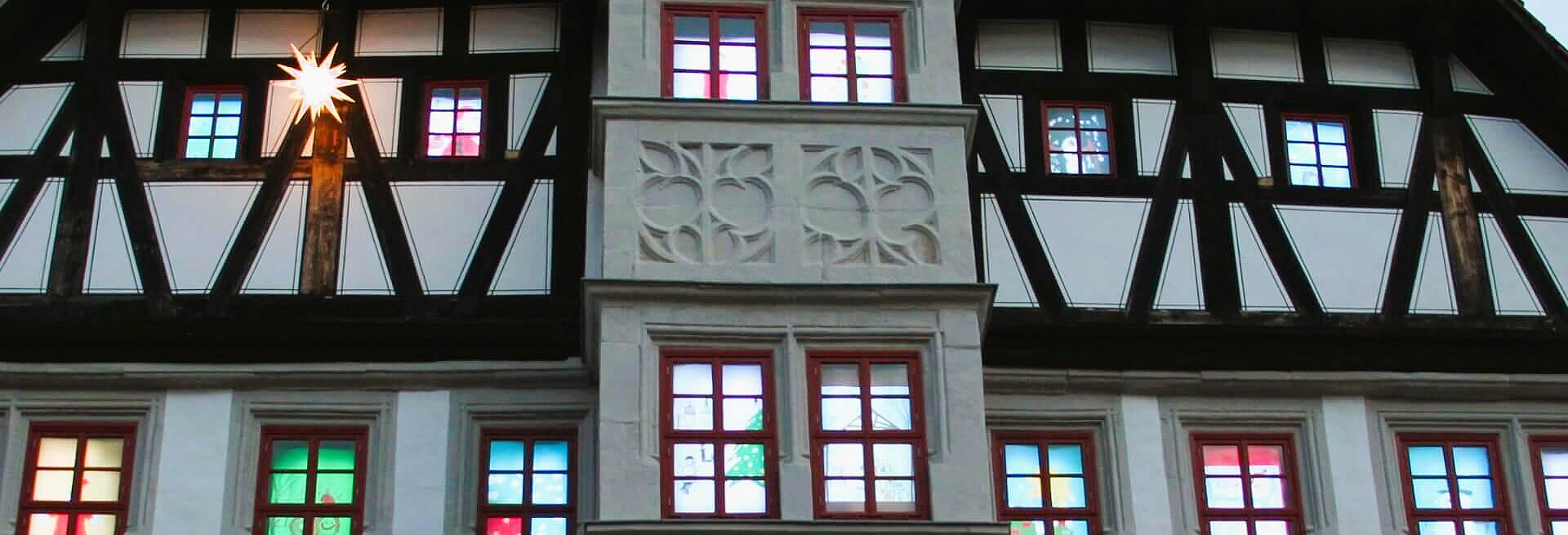 In den Fenstern des Neustädter Lutherhauses leuchtet auch in diesem Jahr ab dem 1. Dezember täglich ein „Advents-Türchen“.